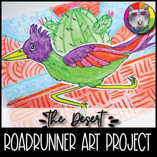 Desert Art Project, Road Runner Line Art Lesson Activity for Elementary